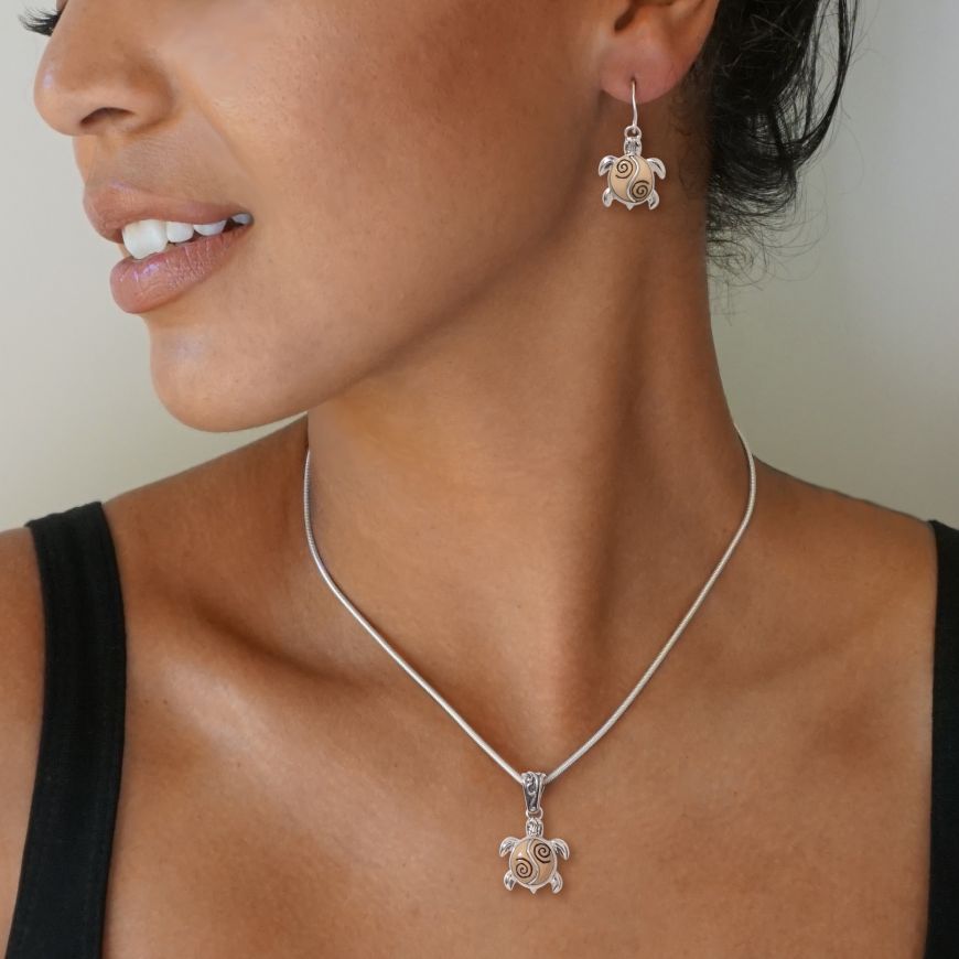 These baby turtle earrings feature hand carved spiral designs and intricate sterling silver details - a lovely pair of fossilized walrus ivory earrings for anyone who loves these precious creatures as much as we do.