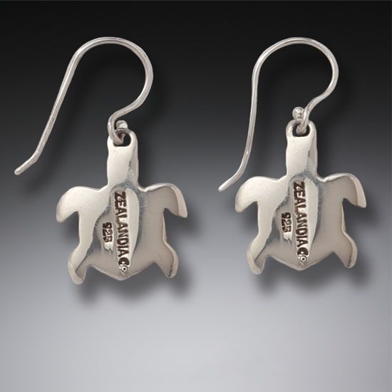 These sweet silver sea turtle earrings are among our smallest and most intricate designs. Sea turtle young hatch after spending some 45-70 days in the egg. They dig their way out of their shells and up to the sand's surface. Then begins their mad scramble for the sea and deep waters where they can begin life in comparative safety. These young must be strong, tenacious, and determined to make it from egg to ocean, and these baby turtle earrings celebrate their journey.