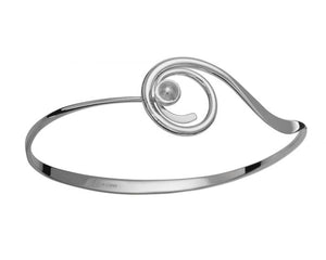 Spirals and dots are the age old symbols represented with creative flair in this contemporary sterling silver bracelet. Wear with Ed Levin's Bindu pendant and Bindu earrings. The bracelet is 1/4" wide and closes with a hook catch at the 5mm ball.