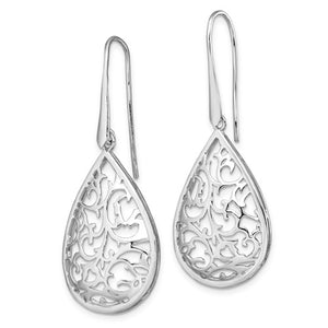 Leslie's Sterling Silver Rhodium Plated Polished Cut-out Teardrop Dangle Earring
