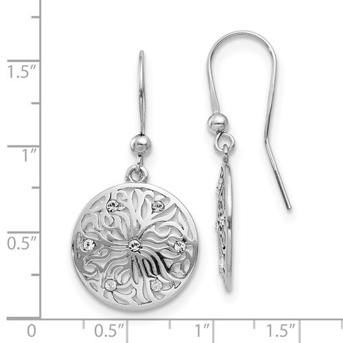 These Leslie's sterling silver earrings feature a cut out decision with seven cubic zirconia. The earrings are finished with french hooks and measure 37mm long and 18mm wide.