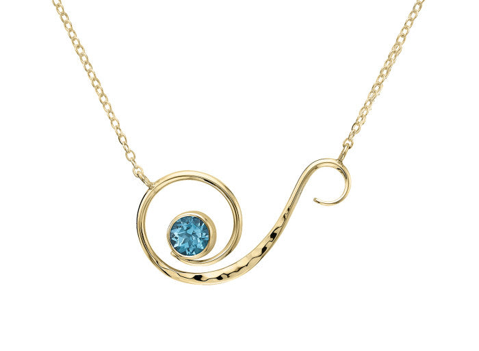 You don’t need a mythic seahorse to ride this wave! A compelling curl glistens with the sparkle of a 6mm faceted stone and ends with a playful splash making the Poseidon necklace a supremely beautiful way to celebrate the lure of the sea.