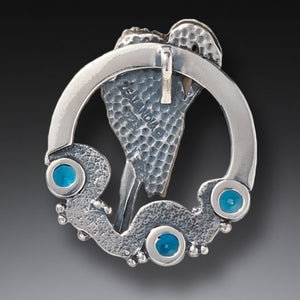 The Egret in Flow dips its long S-shaped neck within a sterling silver frame resplendent in water images and detailing. Our designers selected blue topaz for this piece for its visual association with water and for its brilliant contrast to the soft toned ancient mammoth ivory.