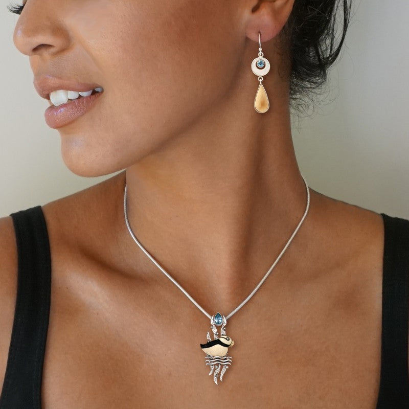 Fossilized Mammoth Tusk and Blue Topaz Puffin Necklace