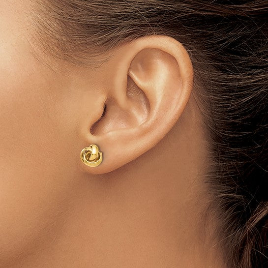 Beautifully polished 10 karat yellow gold earrings in a classic knot design.