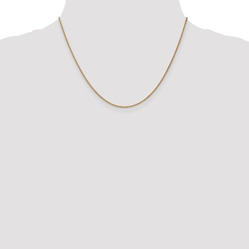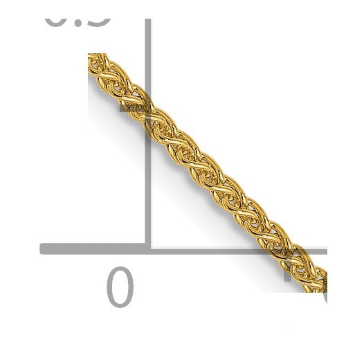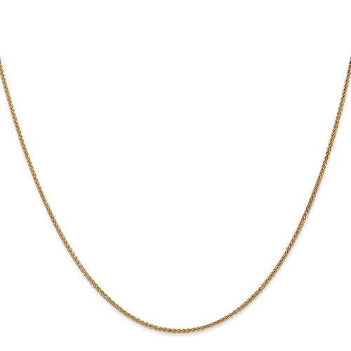 This Italian 14kt yellow gold chain is 1.2 mm in width and is finished with a secure lobster clasp. Spiga chains are also called wheat chains.