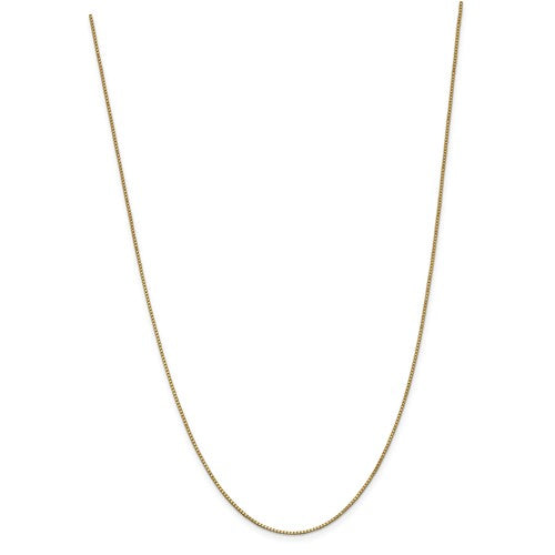 This Italian 14kt yellow gold chain is 1.0mm in width and is finished with a secure lobster clasp. Box chains are a classic and longtime favorite chain style.