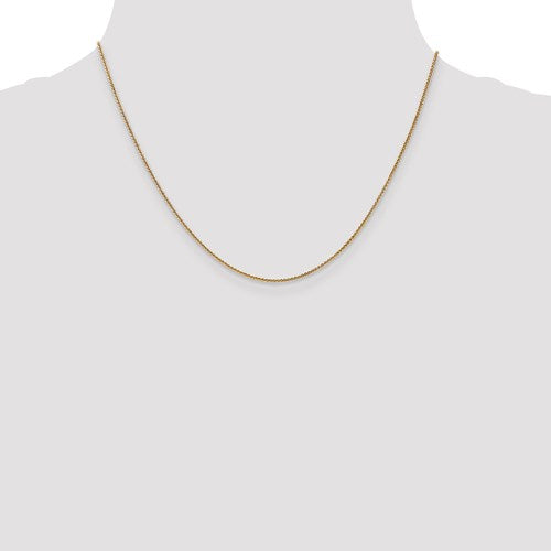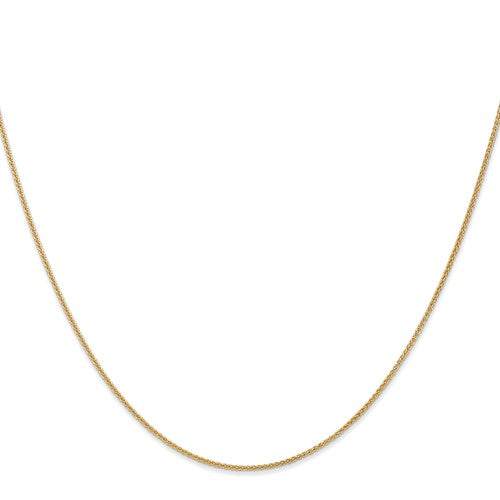 This Italian 14kt yellow gold chain is 1 mm in diameter and is finished with a secure lobster clasp. Spiga chains are also called wheat chains.