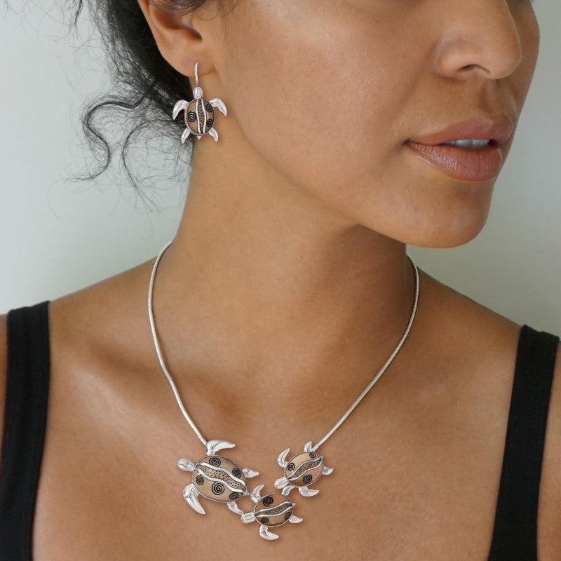 Pair this sea turtle family necklace with our sea turtle earrings for a complete set!